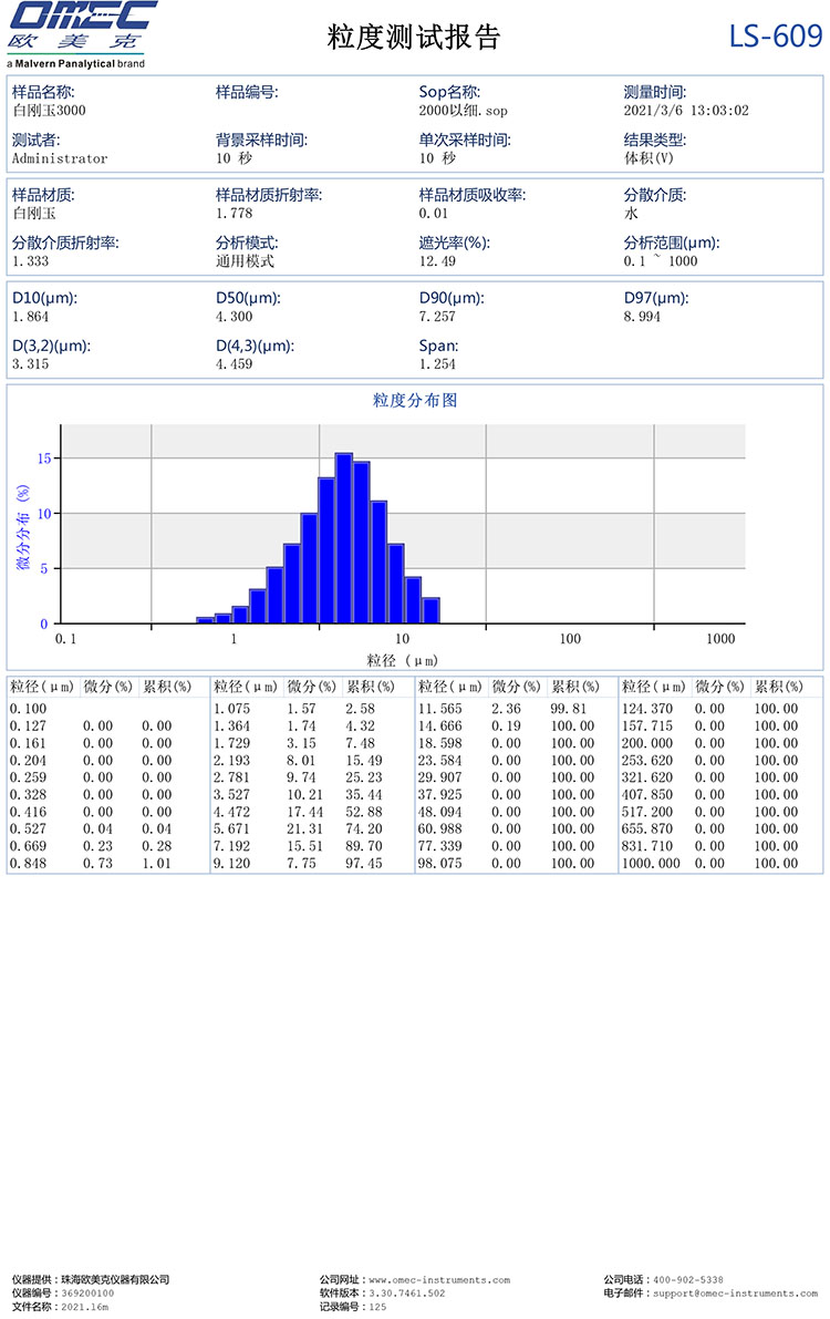 白剛玉W5是以白剛玉微粉的D50數(shù)值定義的白剛玉型號,白剛玉W5相當(dāng)于新國標(biāo)的白剛玉3000目。W5用沉降管法檢測的中值粒徑D50值為4.3±0.5um,與JIS3000#和歐標(biāo)F1000粒徑相當(dāng)。